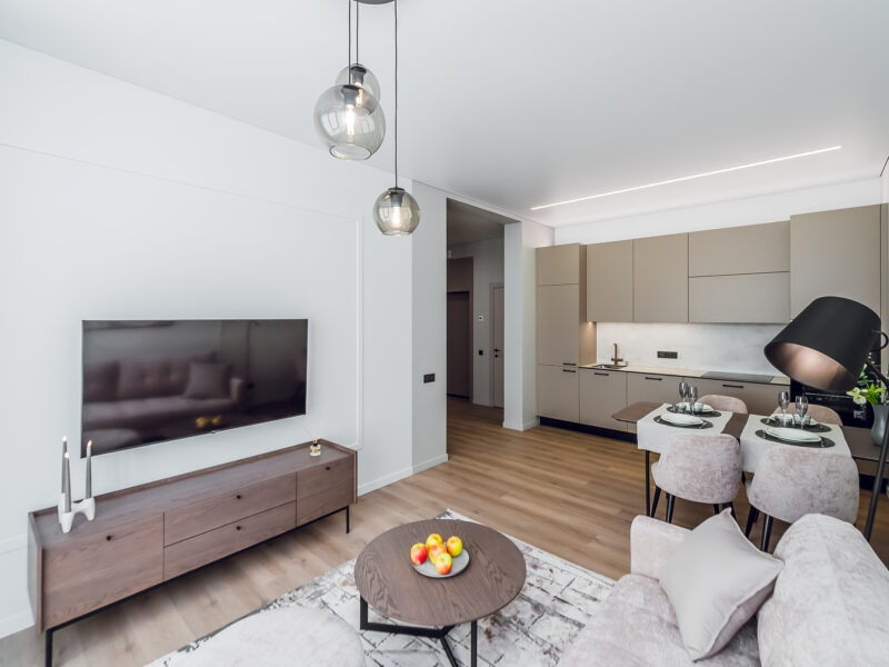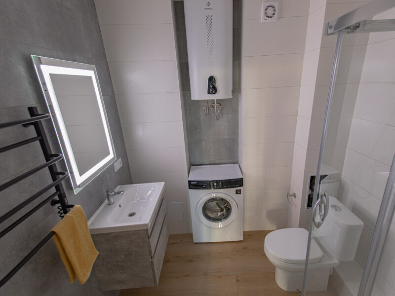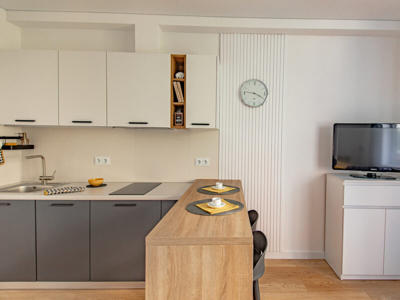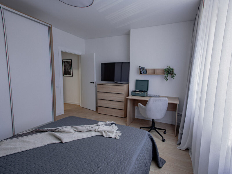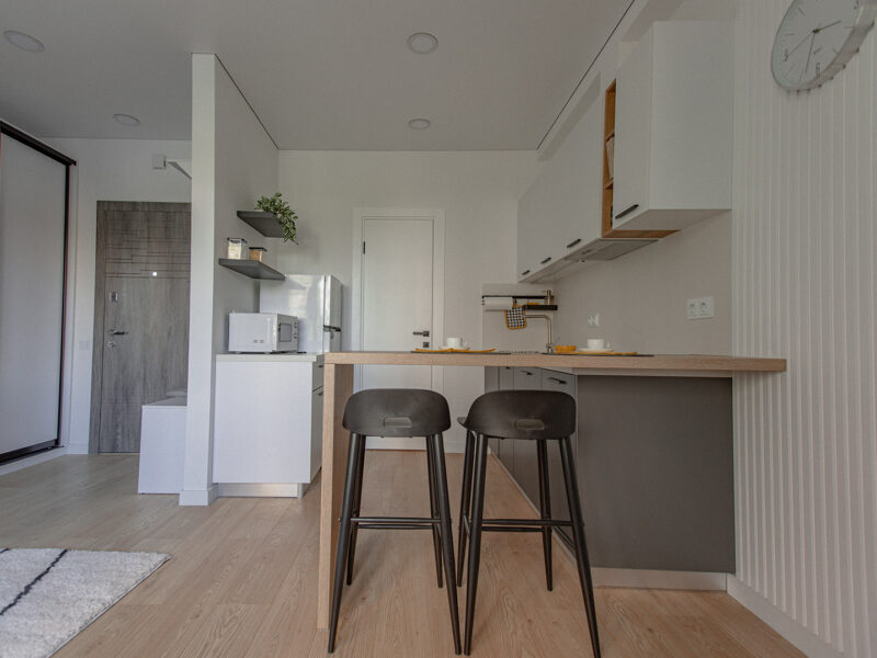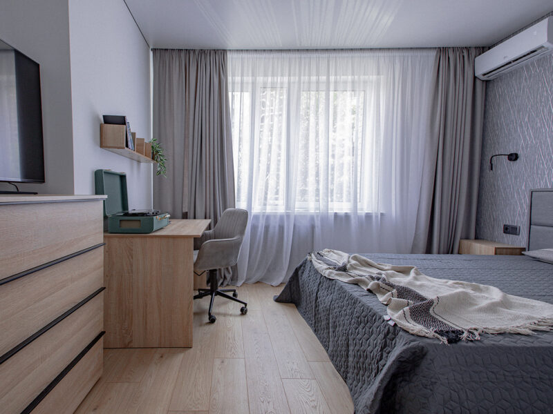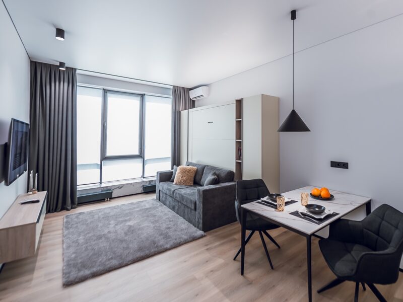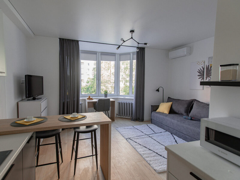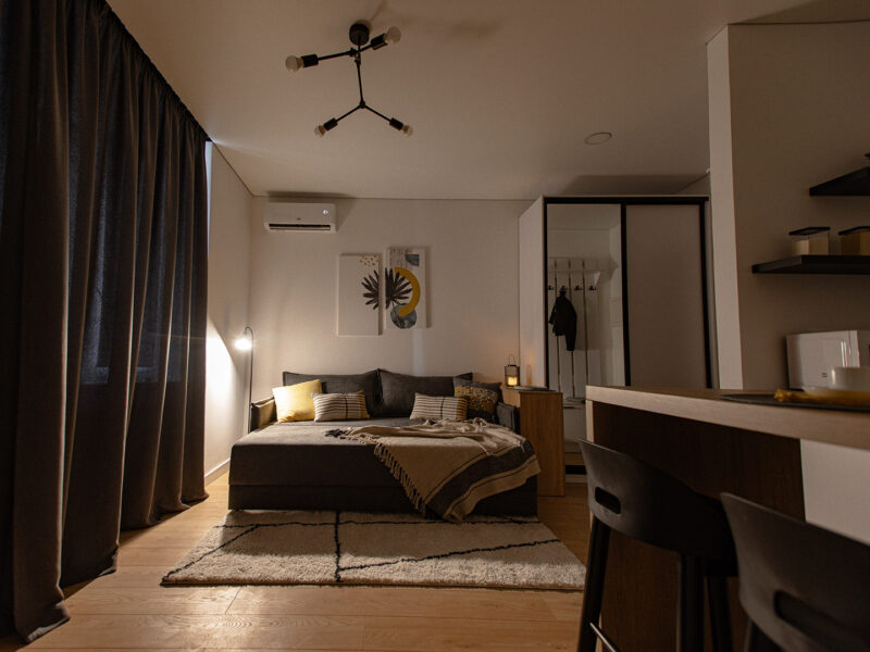Житловий комплекс "River Stone". Виконали розділення обʼєкту площею 95м2 на 2 квартири (євродвушка та студія). За 6 місяців зробили дизайнерський ремонт. Вийшли на дохідність 8% та 12% річних від здачі в оренду.